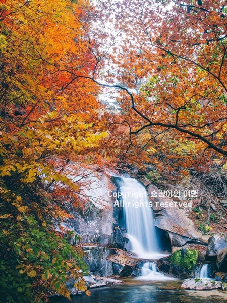 방태산은 산림이 울창하고 자생하는 희귀식물, 희귀 어종이 넘쳐나는 천혜 자연의 보고이면서 높이 10미터와 3미터로 이루어진 거대한 이단폭포 앞에 서면 방태산의 흘러넘치는 정기를 받을 수 있겠습니다. 2km 가량 계곡을 곁에 두고 이어지는 산길에는 붉은 낙엽을 볼 수 있어 마음 편안한 가을 산행을 즐길 수 있는 가을 강원도 가볼만한곳 베스트 10입니다.