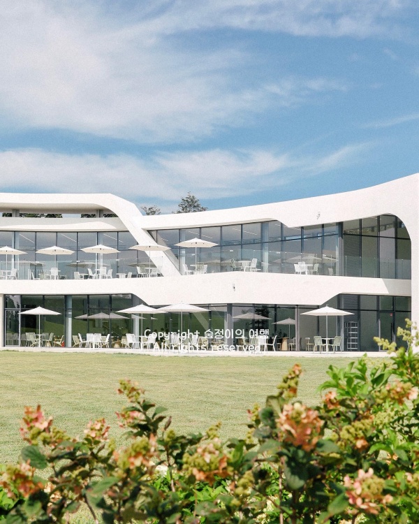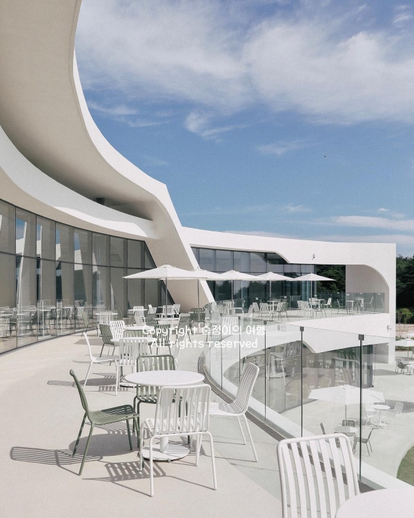 갤러리형 카페로, 매일 10:00~18:00(주문 마감 17:30)까지 운영하며 자체 주차장을 갖추고 있어 접근성이 편리합니다. 광활한 잔디정원과 곡선미가 강조된 건축물이 멀리서부터 시선을 사로잡고, 실내는 화이트톤의 갤러리 같은 분위기로 꾸며져 있어 일반 카페 이상의 공간적 매력을 느낄 수 있습니다. 강원도 고성 실내 가볼만한곳 구조적으로 독특한 동선 덕분에 건물 자체를 구경하는 재미가 있으며, 야외 정원과 어우러져 여유로운 시간을 보내기 좋아요.