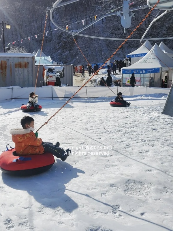 200m급으로 안내된 구간이 있어서 튜브를 잡고 올라가고, 출발선에서 자세를 잡고, 끝까지 내려가며 속도를 즐길 수 있었고 얼음썰매, 빙어잡기, 다라이 썰매 같은 체험을 같이 묶을 수 있으니 경기도 당일여행 갈만한 곳으로 만족스러울 겁니다.