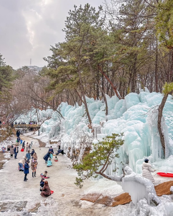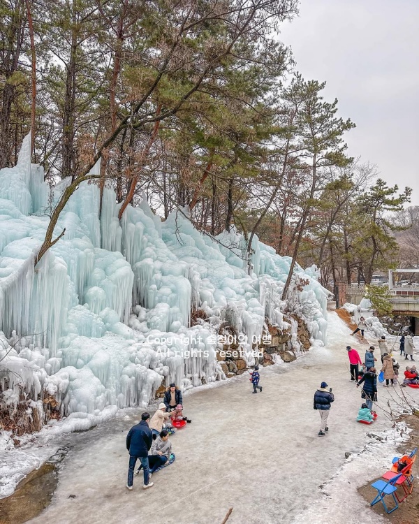 빙벽, 얼음계곡, 얼음썰매가 겨울에만 제대로 만들어져서 1월~2월 초 사이에 가장 많이 찾고 1월에 얼음이 꽁꽁 얼어 있었습니다. 서울근교 눈썰매장 가볼만한곳 베스트 10으로 추천하는 이유는 별도 티켓 없이 카페 주문으로 들어가서 빵 코너, 커피 바, 얼음 썰매를 한 번에 묶어 즐길 수 있고, 비용 부담이 적은 무료 썰매가 핵심입니다.