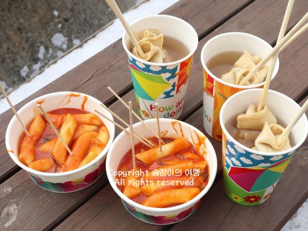 센터 내부에서 간단한 간식류나 따뜻한 음료도 판매하고 있었다. 눈썰매장 옆에 설치된 난방 텐트 안에서 어묵, 핫도그, 군고구마 같은 간식들을 들고 따뜻하게 몸을 녹이는 사람들이 많다.