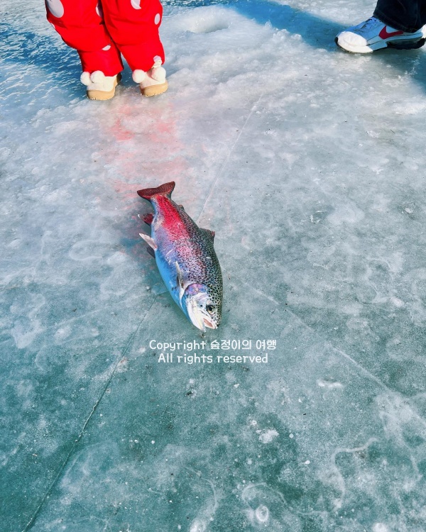 낚시는 얼음 위에서 송어나 빙어를 잡는 방식이다. 바닥에 구멍이 뚫려 있고, 의자에 앉아서 낚싯대를 드리우면 된다. 의외로 빙어가 잘 물리는 구간이 있고, 잡은 물고기를 바로 요리해 먹을 수도 있다. 손맛이 있다는 말을 이때 알게 된다.
