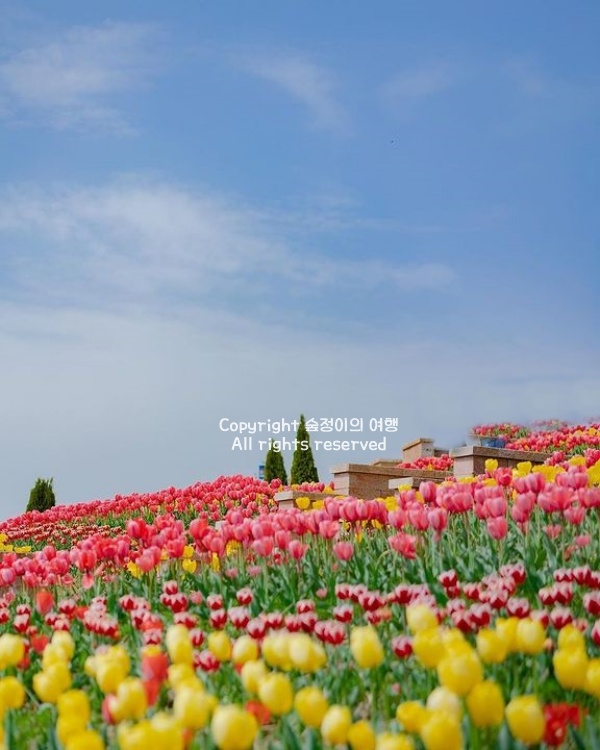 작년에 이곳을 찾았을 때, 튤립이 만개한 시기와 맞물려 공기가 한층 따뜻해진 봄날이었습니다. 산책로를 따라 걷다 보니 바로 앞에서 튤립이 바람에 흔들리며 가볍게 인사하는 듯한 기분이 들었어요. 사진을 찍어도 좋지만, 그냥 눈으로 오래 담고 싶은 순간이 많았습니다.