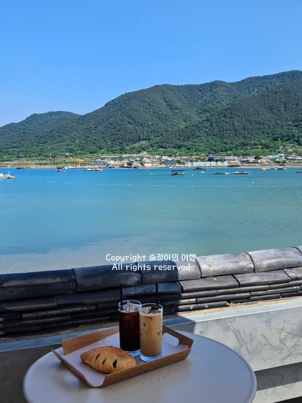 빵 종류도 꽤 다양했는데, 특히 애플파이는 안에 찰떡이 들어 있어서 의외로 쫀득한 맛이 남았어요. 달콤하면서도 과하지 않고, 따뜻한 홍차랑도 잘 어울렸고요. 날씨 좋은 날엔 테라스 자리에 앉아 바다 바라보며 쉬어가는 손님들도 많았는데, 그 풍경 자체가 잠시 멈추고 싶은 기분을 주더라구요. 고성에서 조용히 머물다 가고 싶다면, 이 카페는 꼭 추천하고 싶어요.