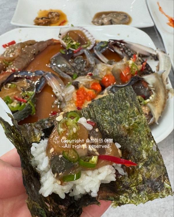 게살이 워낙 실하고 짜지 않아서 평소 게장 잘 못 먹는 분도 맛있게 드실 수 있을 거예요. 홍가리비장은 육즙처럼 단맛이 배어 있었고, 새우장이랑 전복장은 식감이 탱글해서 씹는 재미도 있었어요. 엄마 아빠도 오랜만에 반찬 하나하나에 감탄하면서 드셨고, 나중에 지인들이랑 또 오겠다고 하시더라구요. 고성에서 밥집 고민된다면, 여긴 진짜 고민 안 하고 추천할 수 있어요.