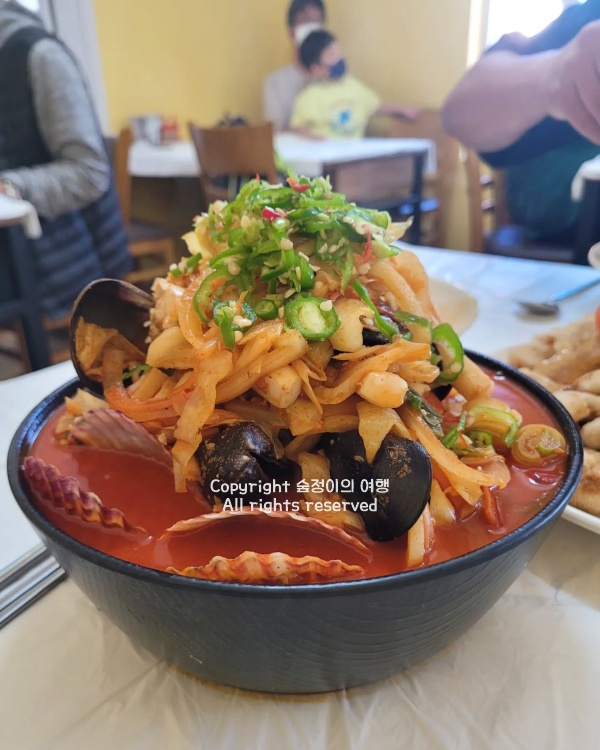 고성 읍내에서 ‘통영짬뽕’이라는 간판을 보고 그냥 지나칠 수 없었어요. 딱 들어가자마자 주방에서 전골냄비처럼 펄펄 끓는 냄새가 나는데, 웬만한 중식당 짬뽕과는 첫 느낌부터 달랐어요. 주문한 해물짬뽕은 그릇부터 큼직했고, 면 위에 올려진 홍합, 오징어, 새우, 배추가 진짜 듬뿍 올라가 있었어요. 국물 한 숟갈 떠봤더니 자극적이지 않으면서도 깊고 맑은 맛이 났고, 끝맛도 깔끔해서 계속 떠먹게 되더라구요.