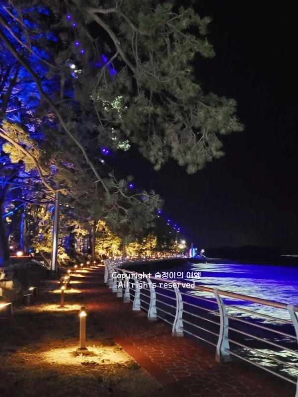 해가 지고 나면 해안 산책로에 불빛이 하나씩 켜지면서, 바다와 모래사장이 알록달록하게 물든다. 따로 포즈를 잡지 않아도, 그냥 서 있기만 해도 인생사진이 나오는 분위기. 걷기에도 좋고, 앉아서 바다 소리를 듣기에도 좋은 조용한 야경 스팟이다.