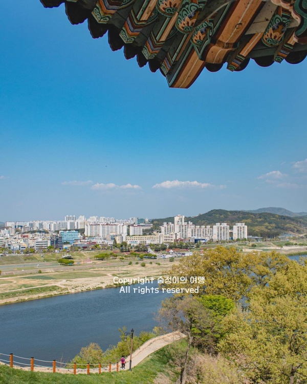 주차장도 넓고 화장실 같은 편의시설도 잘 갖춰져 있어서 공주 가볼만한곳 베스트 10 부담 없이 찾기 좋다. 강 건너로 공산성이 보이는 전망도 일품이고, 바로 옆 미르섬까지 이어져 있어 두 곳을 함께 둘러보면 좋다.