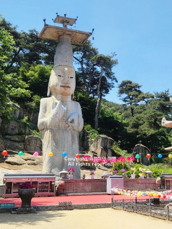 돌계단을 오르며 뒤돌아보면 논산의 드넓은 들녘이 한눈에 들어오고요, 사찰 마당에 들어서면 소나무 숲과 어우러진 고요한 풍경이 발걸음을 천천히 만들어요. 그저 바라만 봐도 마음이 차분해지고, 보살상의 부드러운 미소를 따라 나도 모르게 미소 짓게 됩니다.