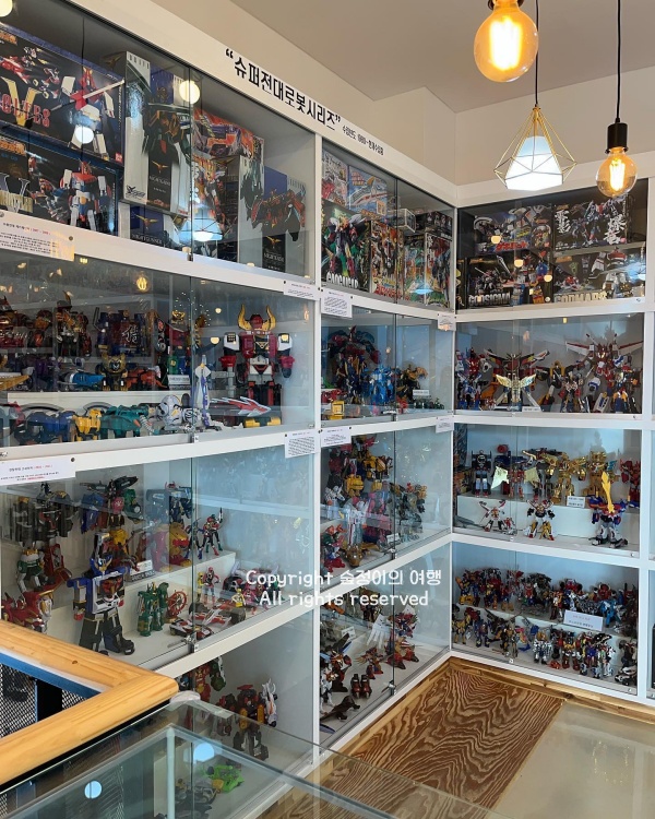 로봇 좋아하는 아이도, 피규어 수집하던 어른도 모두 입꼬리 올라가는 논산 가볼만한곳 베스트 10공간이죠. 논산 로봇뮤지엄은 과거부터 현재까지의 다양한 로봇과 장난감이 전시되어 있는 색다른 실내 공간이에요. 70년대 추억의 장난감부터 최신 피규어까지 세대를 아우르는 전시물은 보는 내내 웃음 짓게 만들고요, 커피 한 잔 들고 둘러보는 여유로운 전시 감상도 참 좋았어요.