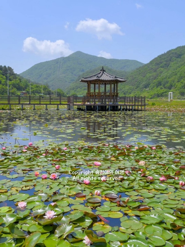 산책로 중간중간엔 정자가 있어서 잠시 쉬었다 가기 좋고, 바람만 좀 불면 정자 안은 꽤 시원해요. 입장료랑 주차료 둘 다 없고, 수국 보러 고성 그레이스정원 가는 길목에 있어서 동선 짜기도 무리 없고, 붐비지 않아 조용하게 여름 연꽃 풍경 즐기기 좋았습니다.