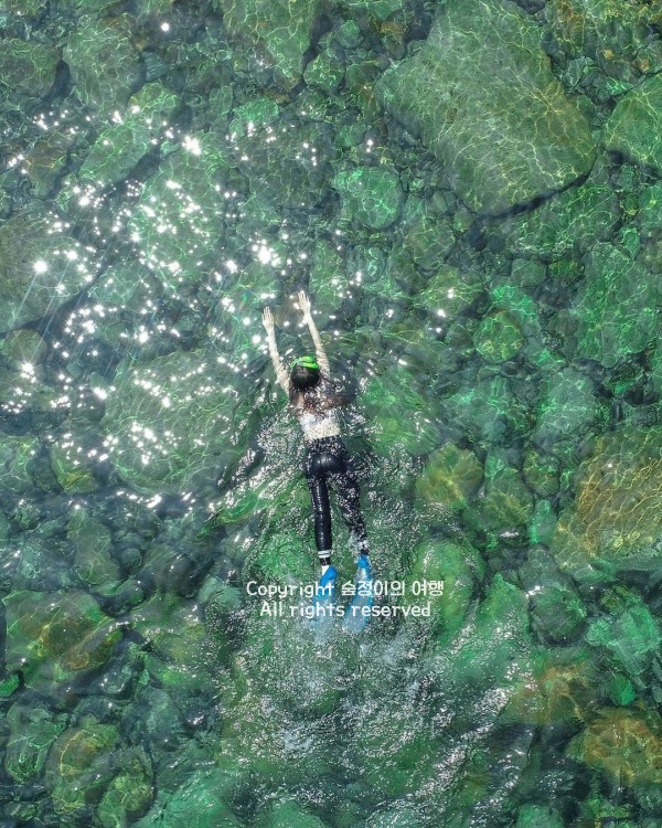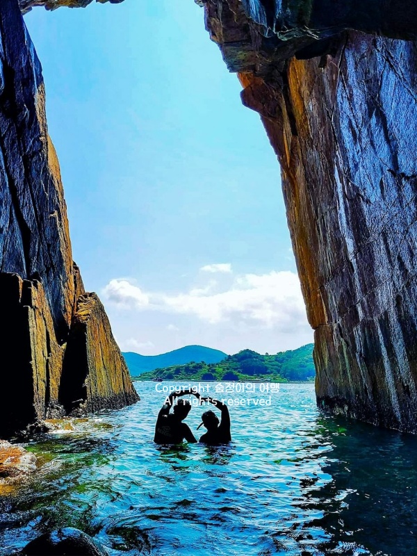 윤돌섬은 구조라해수욕장에서 카약 타고 20분 정도만 나가면 닿을 수 있는, 바다 위에 툭 떨어진 듯한 조용한 섬이에요. 바위섬이라 딱히 걸어 다닐 수 있는 공간은 거의 없지만, 그 주변이 통째로 스노클링 명소인 여름 경상도 가볼만한 곳 베스트 10입니다. 바닷속이 훤히 들여다보이는 날이면 수심 얕은 곳에서 열대어와 해초가 함께 보이고, 바위 아래쪽은 제법 깊은 곳까지 내려가 볼 수 있어서 수온만 맞으면 오래 머물기 좋아요.