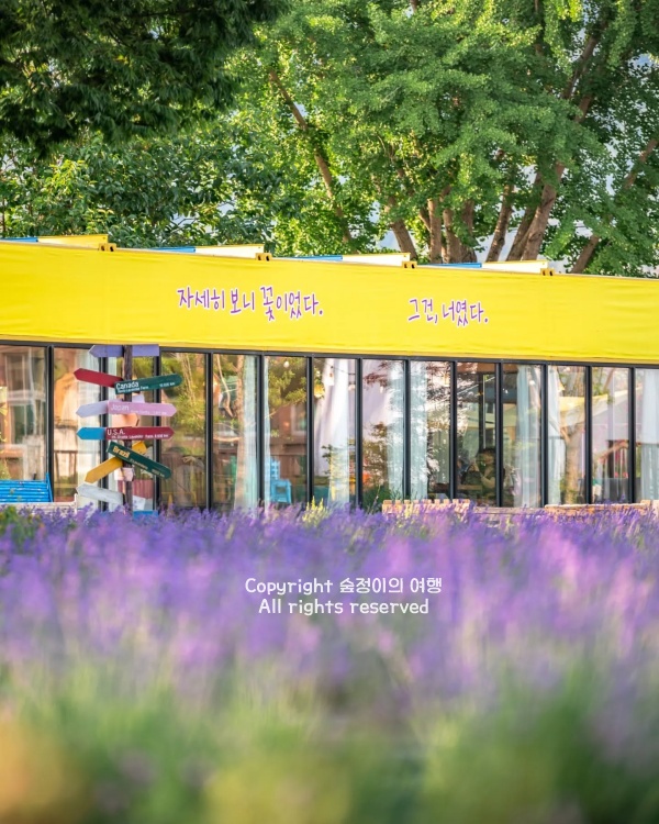 의자가 곳곳에 있어서 잠시 쉬었다 가기도 좋고, 그늘도 넉넉해서 뜨거운 날씨에도 오래 머물 수 있어요. 다만, 라벤더 주변엔 꿀벌이 자주 날아다니니까 아이들과 함께라면 조금 조심하는 게 좋아요. 외부 음식은 반입 금지고, 내부 카페는 테이크아웃도 가능한데 일회용기가 아니라 재사용 가능한 용기에 담아주는 점이 꽤 인상적이에요. 조용히 커피 한 잔 하며 쉬기 좋은 공간이라, 꽃구경뿐 아니라 여름 정원 산책용으로도 괜찮은 곳이었습니다.