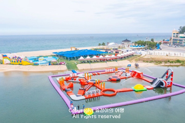 여름 경상도 가볼만한 곳 베스트 10 중에서 아이들 데리고 너무 붐비지 않는 시원한 곳을 찾는다면 울진 하이비치워터파크 괜찮습니다. ‘바다 옆 물놀이장’이라는 말이 딱 어울리는 곳으로 망양정 앞 해변 바로 옆 공터에 새로 생긴 시설인데, 아직 사람들한테 많이 알려지지 않아서 한적하게 즐기기 좋습니다. 울진터미널에서 차로 5분 거리라 위치도 편하고요.