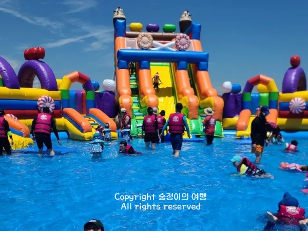 다만, 안전요원이 많진 않아서 아이들은 항상 눈길 닿는 데 두는 게 좋아요. 일반 부스 자리 대여는 2만 원이라 조금 비싼 편이지만, 시원한 바닷바람 불어오는 워터파크라는 점에서는 만족도가 괜찮았습니다.