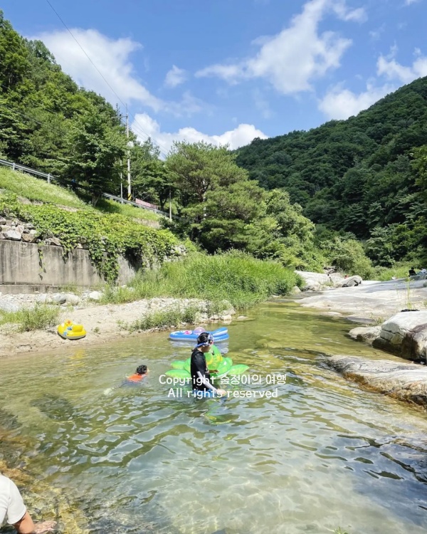 안전요원은 없고, 락커, 샤워시설 같은 것도 당연히 없습니다. 그냥 자연계곡 그대로, 지자체가 정비만 어느 정도 해둔 수준이라서 구명조끼, 튜브, 물놀이 신발 같은 건 직접 준비해서 가야 하고, 아이랑 같이 가는 경우엔 계속 붙어 있어야 해요.