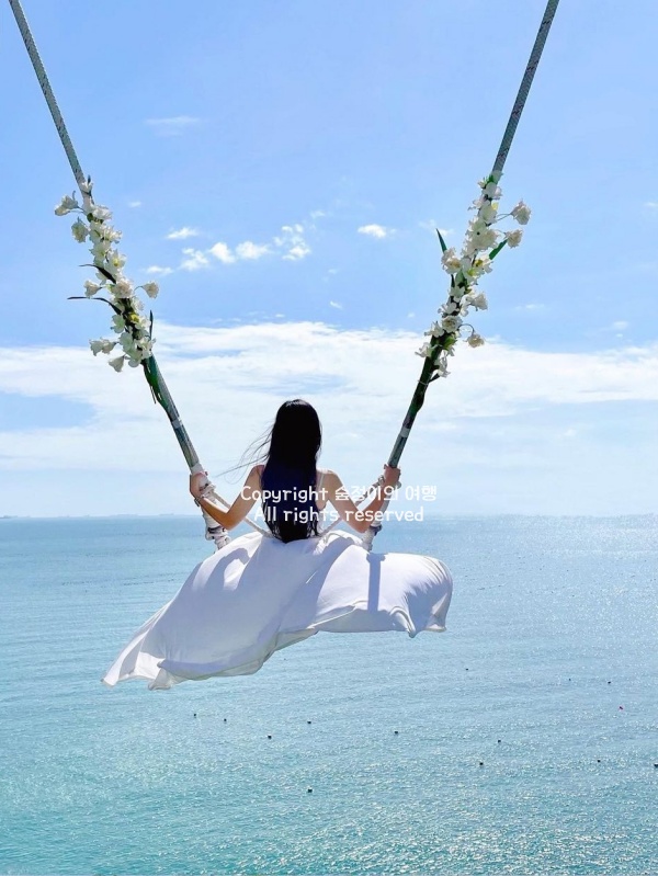여수 가볼만한곳 베스트 10 르그랑블루리조트에서 운영하는 그랑스윙을 추천합니다. 발리에서 볼 법한 그네에서 바다를 배경으로 인생샷을 남길 수 있는 곳이에요. 약 5분 동안 탈 수 있는데, 처음에는 살짝 긴장됐지만 생각보다 안정적이었고, 마치 바이킹을 타는 듯한 짜릿한 느낌이 있었습니다. 너무 이른 시간보다는 오후 2~3시쯤 이용하는 걸 추천하는데, 이 시간대에는 햇빛이 적당해 사진이 가장 예쁘게 나오더라고요.
