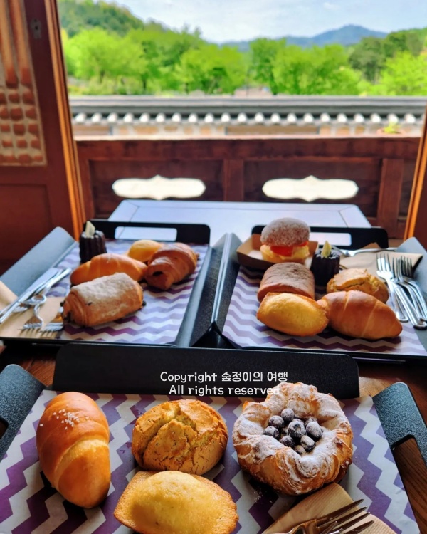 포인트: 족욕 공간, 온돌방 좌석, 장독대 포토존, 할인 빵 코너