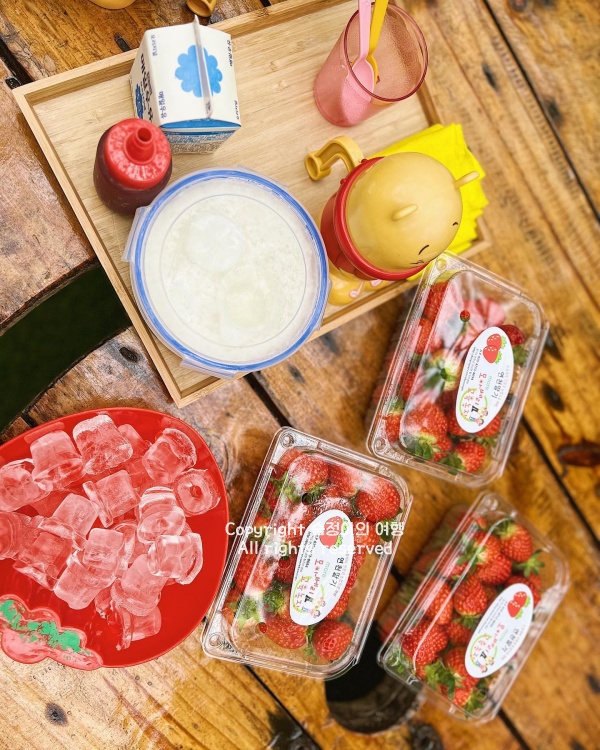 체험 내용: 딸기 따기, 딸기잼·아이스크림·퐁듀 만들기, 시식, 식빵 제공, 놀이터