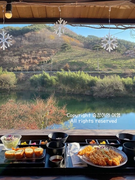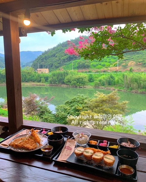 멋진 야외뷰와 돈가스가 맛있는 전남 곡성 가볼만한 곳 베스트 10 지리산가는길입니다. 이름 그대로 지리산으로 가는 길에 위치해있는 고즈넉하고 시골 할머니댁 같았고, 늑한 오두막의 느낌을 물씬 풍기는 곳으로 강가로도 내려갈 수 있고 초록초록한 풍경이 좋았습니다. 야외 좌석 앞으로 펼쳐진 섬진강 뷰를 보며 먹는 치즈돈까스가 핵꿀맛인데 아마 푸릇함과 함께 먹으니 더 맛나게 느껴졌던 것 같습니다.