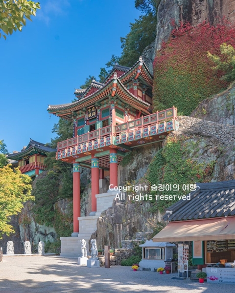 멋진 운해와 일몰뿐만 아니라 단풍이 아름다운 구례 사성암은 약 500여 미터의 고지대에 위치해 전망대에서 바라보는 풍경 또한 아름다운 전남 가볼만한곳 베스트 10 국내여행지입니다. CNN에서 선정한 한국의 아름다운 사찰 33곳에 선정된 사성암은 잔잔하게 흐르는 섬진강과 노고단을 비롯한 지리산 능선 그리고 구례의 넓은 들녘을 한눈에 조망할 수 있는 아름다운 암자입니다.