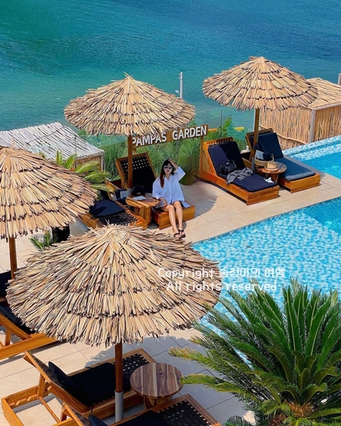 여수 나탄비치클럽은 마치 휴양지에 온 것 같은 세상 힙한 여수 핫플로 동남아를 통째로 옮겨온 것 같은 이국적인 분위기가 물씬 풍기는 곳이었습니다. 물놀이 하면서 맛있는 음식과 음료를 즐길 수 있는 여수 가볼만한 곳 베스트 10이죠. 클럽파티 디제잉 장비까지도 준비되어 있어서 정말 재밌는 곳입니다.
