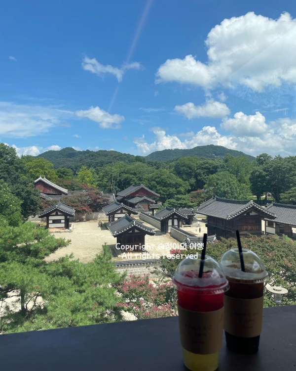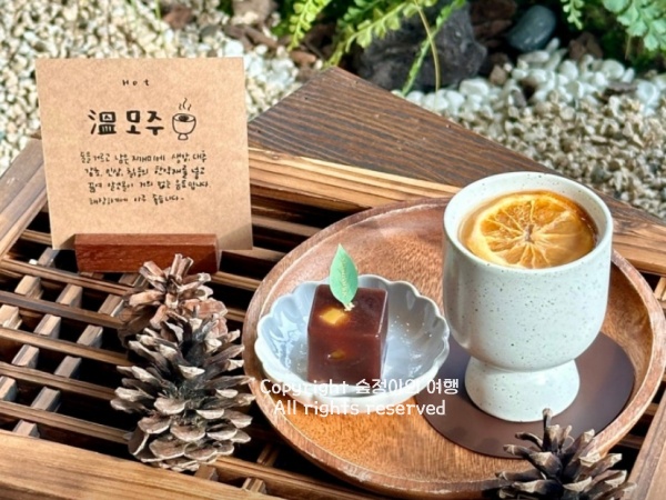 마지막엔 직접 만든 모주를 시음하며 양갱도 곁들여주셨는데, 달큼하고 따뜻한 맛에 기분까지 편안해졌어요. 체험 후엔 좌식 공간에서 경기전을 바라보며 시원한 빙수와 커피도 즐길 수 있었죠. 포장된 병도 예뻐서 선물로 챙기기에 손색없었고요. 비 오는 날, 밖은 축축했지만 안에서는 한참을 머물고 싶은 시간이었습니다.
