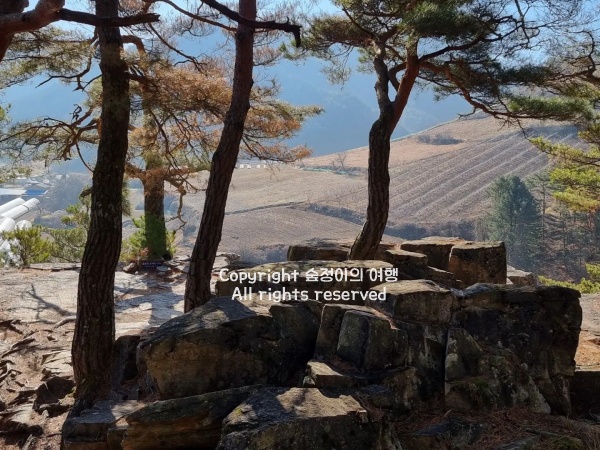 정상에 오르면 층층이 쌓인 바위들이 오랜 세월의 흔적을 그대로 보여주고, 바위 틈 사이로 자란 소나무들이 커다란 반석 아래로 절벽과 계곡이 맞닿아 있으며, 멀리까지 탁 트인 전망이 펼쳐져 한참을 바라보게 되는 곳이었어요.