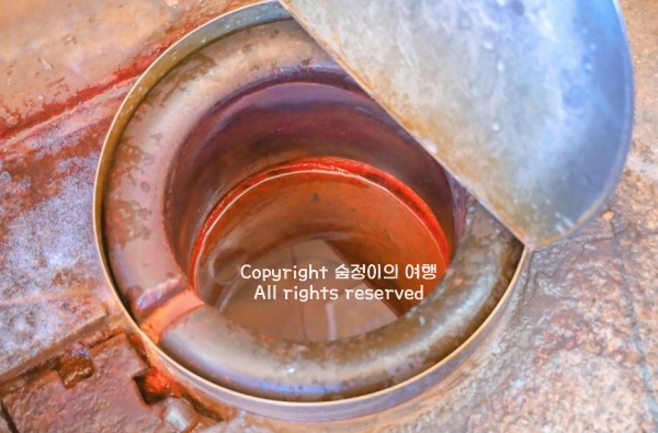 맑은 계곡물 소리를 따라 산자락을 오르면, 바위 틈을 뚫고 솟아나는 화암약수를 만날 수 있습니다. 화암팔경 중 첫 번째 명소로 꼽히는 이곳은 톡 쏘는 탄산수로 유명한데, 입안에서 사이다처럼 퍼지는 청량감이 인상적이었어요. 약수터 주변에는 철분이 산화된 붉은 반점이 곳곳에 남아 있어, 시간이 만든 자연의 흔적을 그대로 간직하고 있습니다. 이곳의 물은 칼륨과 불소를 비롯한 9가지 미네랄을 함유하고 있어 위장병, 피부병, 눈병 등에 좋다고 알려져 예로부터 많은 사람들이 찾는 정선 가볼만한곳 베스트 10곳이기도 합니다.