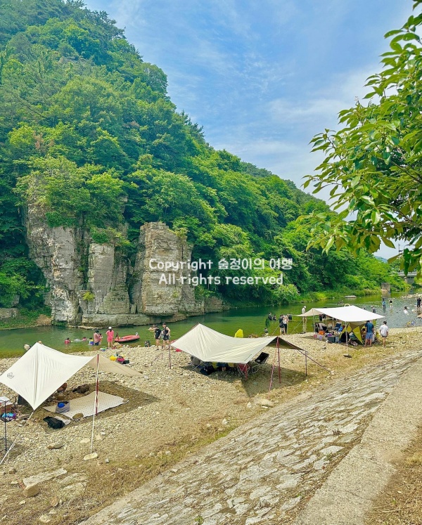 캠핑을 즐기며 고기를 구워 먹을 수 있는 시설도 잘 갖추어져 있으며, 샤워실과 화장실, 개수대 등 편의시설도 마련되어 있어 편리합니다. 여름철에는 물놀이와 캠핑을 동시에 즐길 수 있고 예약은 온라인으로만 가능하며, 운영 시간은 오전 10시부터 저녁 10시까지입니다.