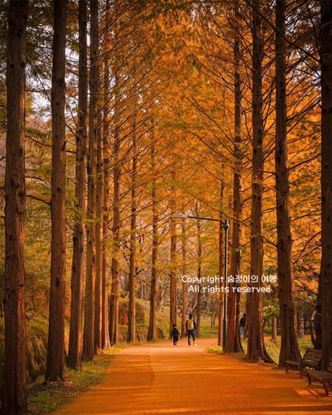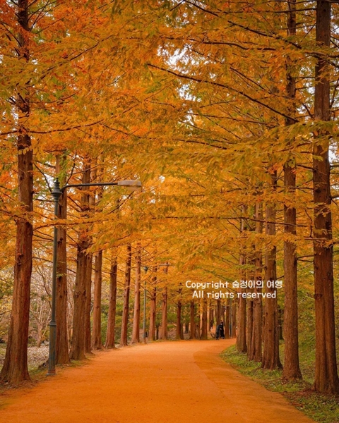 황톳길을 걸으며 메타세콰이어길의 계절이 변하는 풍경을 감상할 수 있는 충남 여행지 추천 금강수목원이 있습니다. 평온한 날씨에 방문하여 황토 메타세콰이어길 걸어보고 바쁜 일상 속 힐링을 얻어갈 수 있습니다. 웅장한 메타세콰이어길은 황토 흙을 깔아 놓아서 맨발로 걸으셔도 좋습니다. 건강에도 좋고 눈도 호강하고 1석 2조이면서 바스락바스락 밟히는 잎까지 너무 힐링이었던 공간 충남 가볼만한곳 베스트 10이었습니다.