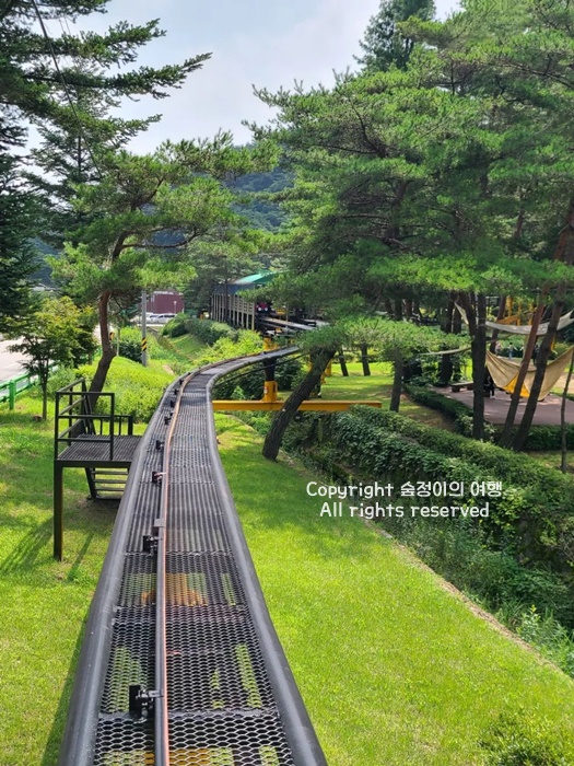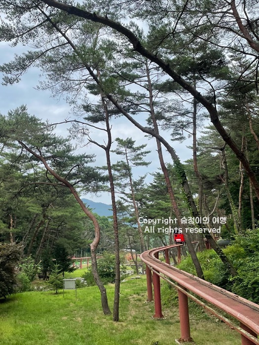 시원한 바람을 가로지르며 달려볼 수 있는 충북 여행지 추천 장소로 가족,친구, 연인과 가면 재미도 두배 행복도 두배입니다. 솔향공원에서는 스카이바이크를 탈 수 있는데 높이 2 ∼9m의 레일을 따라 소나무 숲 사이를 달리며 솔 내음을 만끽할 수 있습니다. 힘들이지 않고 주변 경치를 즐길 수 있었습니다. 가속도가 붙는 내리막 코스가 하이라이트이고 진짜 재밌습니다.