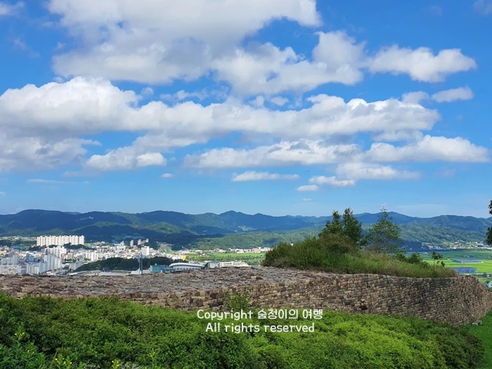 산성에서 가장 전망이 빼어난 곳은 옛 봉수대로 지금은 전망대로 이용되고 있고 전망대에 올라서니 사방이 환하고 속리산과 너른 보은의 들녘 그리고 정겨운 시골 마을이 두 눈 가득 들어와서 인상적이었던 충북 가볼만한곳 베스트 10입니다.