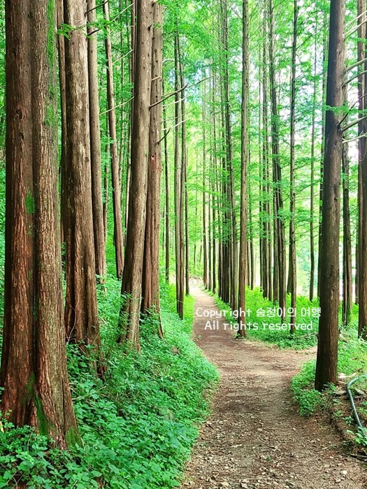 미세먼지 걱정이 없는 옥천의 휴양지 회인산림욕장은 아무리 고개를 들어도 보이지 않는다는 나무 높이에 정말 압도당했습니다. 비밀의 숲 그런 분위기였고 메타세쿼이어길이 아름다운 충북 가볼만한곳 베스트 10 여행지였습니다.