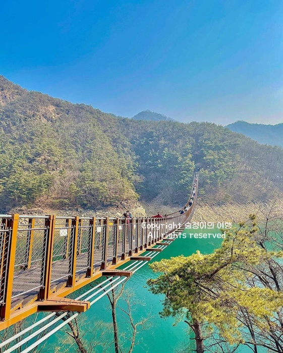 소금강이란 별칭이 생겼을 만큼 빼어난 아름다움이 있는 충북 가볼만한곳 베스트 10으로 옥순봉 출렁다리는 편안하게 이용할 수 있고 옥순봉을 가장 가까이에서 조망할 수 있습니다.