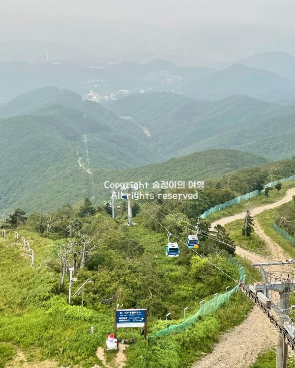 보통 케이블카는 풍경을 조금 즐기다 보면 금방 끝나는 느낌이라 아쉽다는 분들이 많은데, 발왕산 케이블카는 편도 18분 간 주변을 충분히 둘러보고 여유롭게 사진도 찍으며 즐길 수 있어서 좋습니다. 겨울에 평창 갈만한곳으로 설경도 환상적입니다.