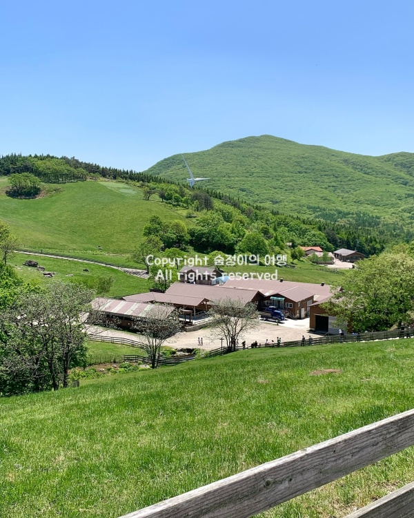 산너미목장은 캠핑과 트래킹 명소로, 육십마지기 정상까지 오르는 길이 최고였습니다. 목장에서는 흑염소와 토끼 같은 동물들을 가까이서 볼 수 있으며, 다양한 야생 동물들도 만나볼 수 있습니다. 트래킹 코스는 편도 약 30분 정도로 짧지만, 정상에 도달하면 평창 시내를 한눈에 내려다볼 수 있는 멋진 풍경이 펼쳐집니다.