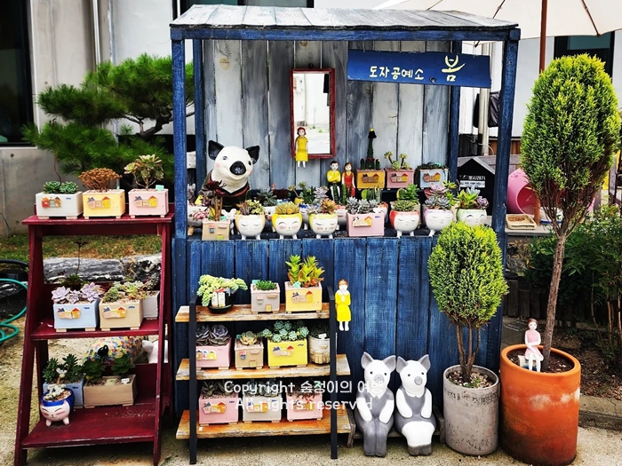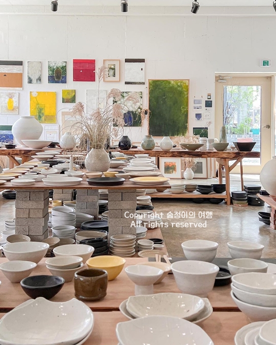 경기도 드라이브코스 추천하는 이천 예스파크는 이천 도자예술마을입니다. 공방마다 넘 이뻐서 사진 찍기 바쁘고 오래 머물고 싶었고 커피잔, 머그컵, 접시, 도자기 그릇 등 예쁜 게 너무 많고 각 공방마다 특색 있고 예쁩니다. 거리도 재미있는 소품, 그림이 많아 걷는 재미가 있고 심지어 간판까지 다 예쁩니다. 이천 드라이브 코스로 예술과 감성을 담아오는 건 어떤가요?