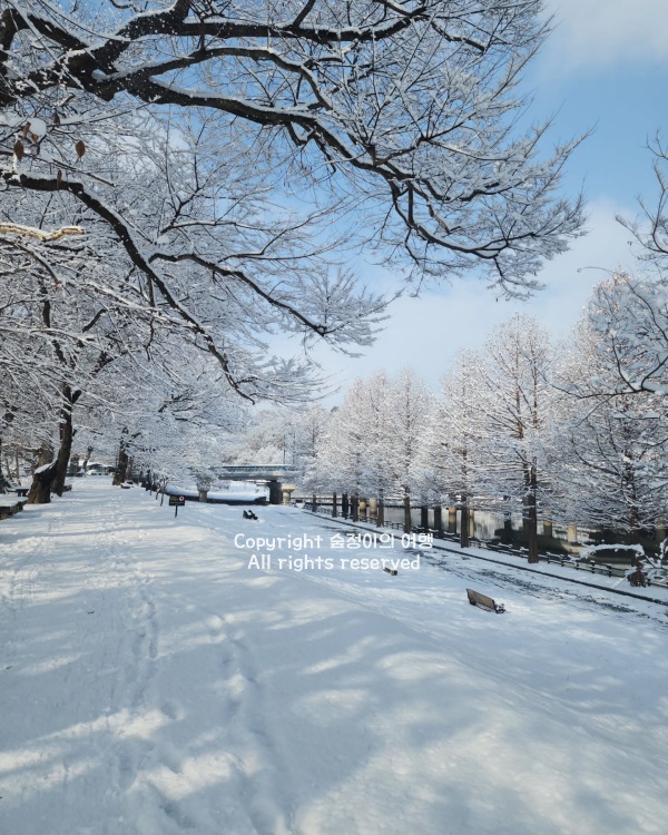 눈 덮인 담양 메타세콰이어길은 정말 아름다운 전라도 1월 국내 여행지 추천 탑입니다. 양방향으로 펼쳐진 나무들이 길을 따라 늘어서 있어 드라이브하는 내내 멋진 풍경을 감상할 수 있었어요. 드라이브뿐만 아니라 산책하기에도 좋고, 사진도 멋지게 나와 잠깐 나들이하기에 딱이었습니다.