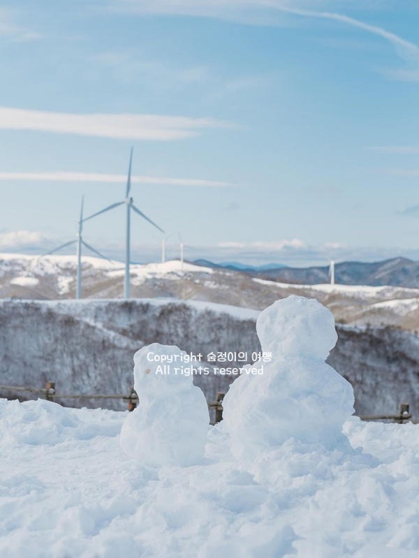 겨울 강원도 여행지 추천 눈 내린 날 꼭 가야하는 곳이라면 삼양라운드힐입니다. 온 세상이 하얗게 변하면 새하얀 풍력발전기와 함께 사진을 찍을 수 있는게 가장 큰 매력입니다.