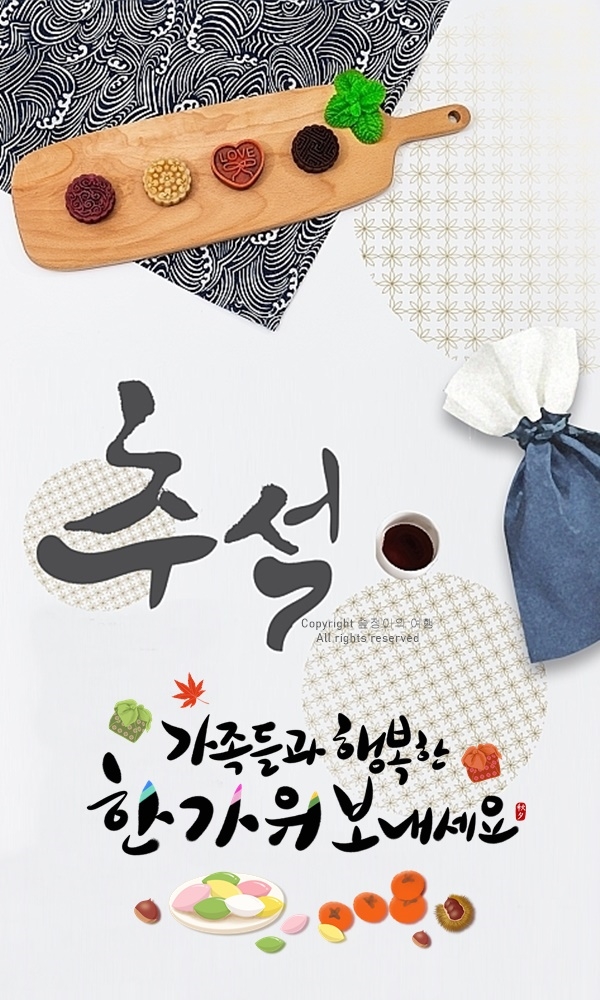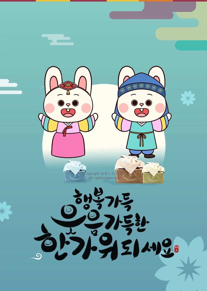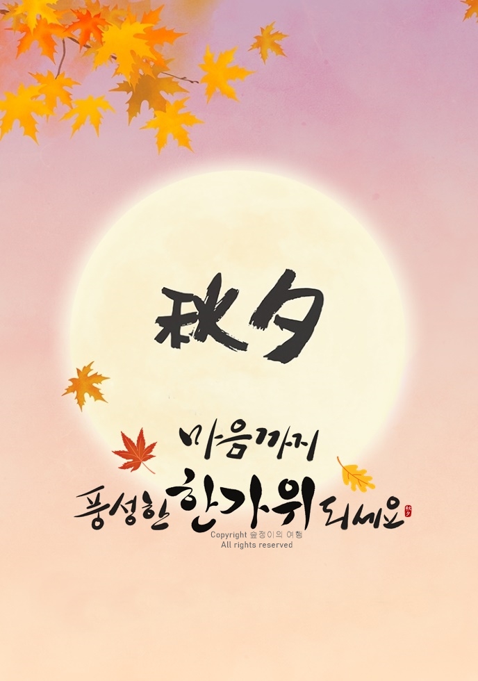 풍요로움에 미소 짓고 선선한 바람에 기분이 좋아지는 계절 가을입니다. 그동안 근심걱정 잠시 내려놓고 가족분들과 사랑 가득하며 많은 것을 나누는 추석 명절 연휴가 되기를 바라겠습니다. 웃음꽃 가득 피는 한가위 되시고, 감기 조심 건강하세요.