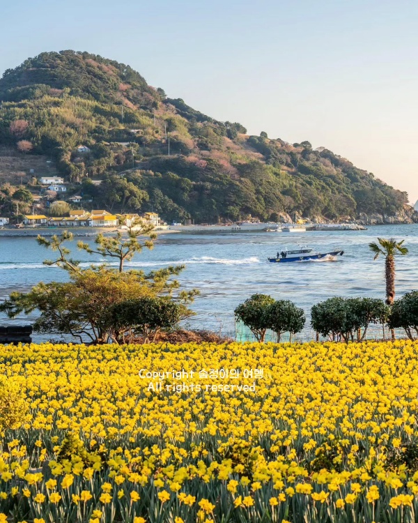 매서운 겨울바람을 이겨내고 가장 먼저 노란 얼굴을 내미는 수선화를 보러 거제 공곶이로 떠나는 건 3월 여행의 진짜 묘미예요. 한 노부부가 수십 년간 호미 한 자루로 비탈진 산자락을 일궈 만든 이 엄청난 수선화 밭은, 3월 중순부터 바다를 향해 황금빛 카펫을 깔아놓은 듯한 장관을 연출합니다. 빽빽한 동백나무 터널을 지나 가파른 돌계단을 조심조심 내려가다 보면 갑자기 시야가 확 트이면서 노란 수선화와 몽돌해변, 그리고 저 멀리 내도까지 한눈에 들어오는데, 그 압도적인 풍광에 입이 떡 벌어지게 됩니다.