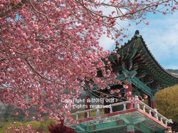 여수 돌산도 해안 절벽 위에 자리한 용월사는 '바다 위 사찰'로 불린다. 창건 시기가 정확히 알려지지 않은 소박한 사찰이지만, 봄이 되면 진입로부터 경내까지 벚꽃이 피어나면서 분위기가 완전히 달라진다. 바닷가 쪽에 자리한 큰 벚꽃나무 아래에서 파란 바다와 분홍빛 꽃잎이 한 프레임에 들어오는 구도가 이 사찰의 시그니처로, SNS에서 '여수 숨은 벚꽃 명소'로 꾸준히 회자되는 이유다. 만개할 때도 크게 북적이지 않아 조용하게 봄 사찰 분위기를 즐기기 좋다.