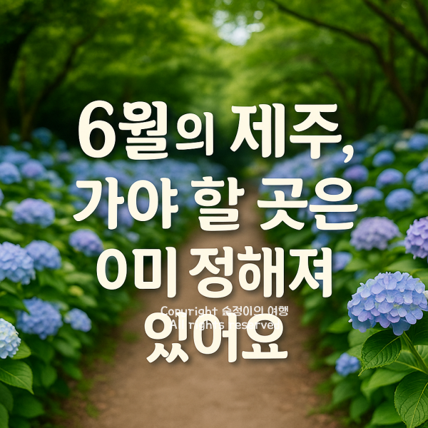 6월의 제주도는 수국이 여행의 흐름을 바꿔놓을 만큼 압도적인 계절입니다. 섬 곳곳에서 수국이 피기 시작하고, 산책로와 도로 주변, 카페 앞에도 수국이 퍼져 있어 걷는 시간마다 풍경이 바뀝니다.