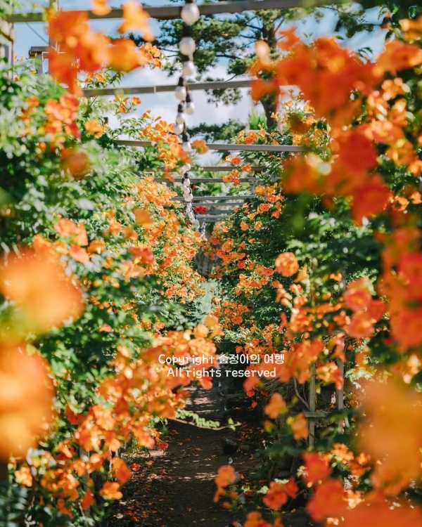 전체 관람은 1시간 남짓이고, 곳곳에 포토존이나 벤치가 있어서 잠깐씩 쉬어가기에도 좋았어요. 곶자왈 숲길과 상록수 미로도 연결돼 있어서, 꽃만 보고 끝나는 코스가 아니라는 점도 괜찮았고요. 능소화와 여름꽃 사이를 걷고 싶다면, 6월의 비체올린은 한낮 햇살에도 오래 기억에 남을 6월 제주도 가볼만한곳 10곳 입니다.
