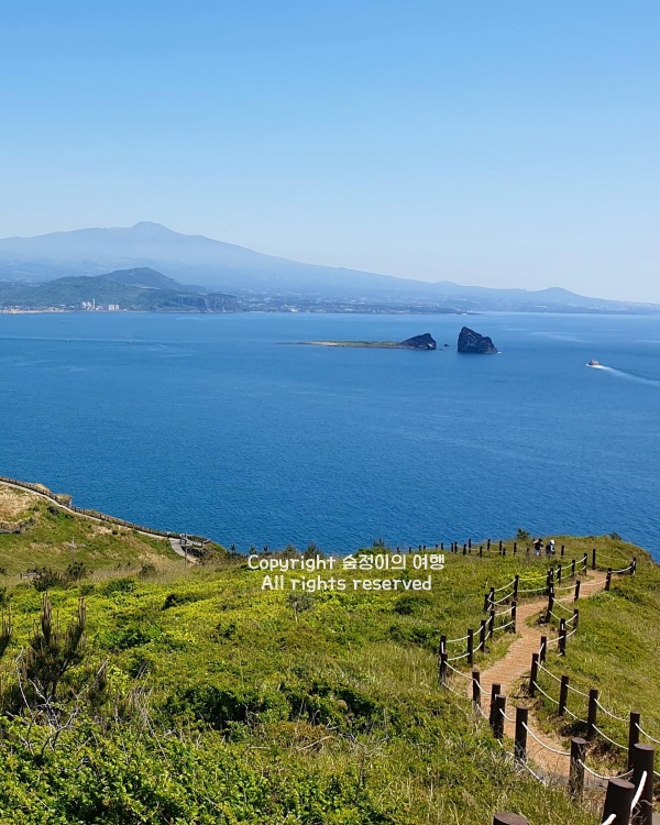 송악산 둘레길은 걷는 데 부담이 없어서 오르막이 싫은 사람도 편하게 다닐 수 있는 코스입니다. 거의 평지에 가까운 길이 해안선을 따라 이어지고, 한쪽으론 푸른 초지, 다른 쪽으론 바다가 함께 보입니다. 햇살은 따가워도 바람이 시원하게 불어와서, 6월 초순부터 중순까지는 딱 걷기 좋은 시기예요. 길 중간마다 앉을 곳이 있고, 체력에 따라 반만 돌거나 전체를 천천히 한 바퀴 돌아도 무리가 없습니다. 둘레길 전체는 1시간이면 충분하지만, 풍경이 넓고 계속 바뀌어서 훨씬 길게 느껴졌어요.