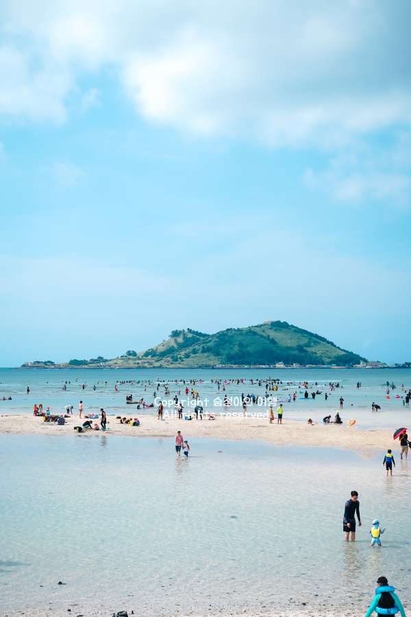 산책하듯 바닷가를 걸어도 좋고, 돗자리 펴고 바다를 바라보며 쉬기에도 충분한 여유가 있습니다. 해수욕장 바로 앞에 자리 잡은 비양도와, 수평선 너머로 펼쳐진 풍경이 시원하게 시야를 열어줘요. 바람이 잘 불고, 그늘 없는 탁 트인 구조지만 본격적인 여름이 시작되기 전, 미리 다녀오면 좋은 해변 중 하나입니다.