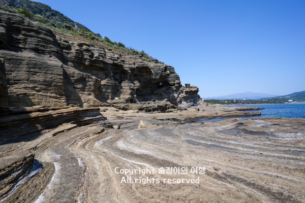 바위 절벽은 층층이 겹쳐져 있고, 곡선으로 휘어진 길이 이어져 있어서 걷는 재미도 있습니다. 위로는 산방산이 함께 보이고, 뒤로는 드넓은 해안선이 열려 있어서 바다 안쪽을 걷는 듯한 느낌도 들었어요. 길 전체가 평지라 어르신과 함께 걷기에도 괜찮지만, 미끄럼에 주의는 필요했습니다. 개방되지 않으면 아예 진입이 안 되니, 6월 제주도 가볼만한곳 10곳 여행코스 중 일정에 여유를 두고 움직이는 게 좋아요.
