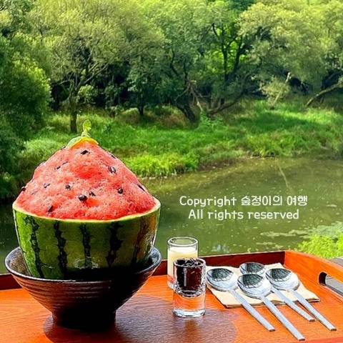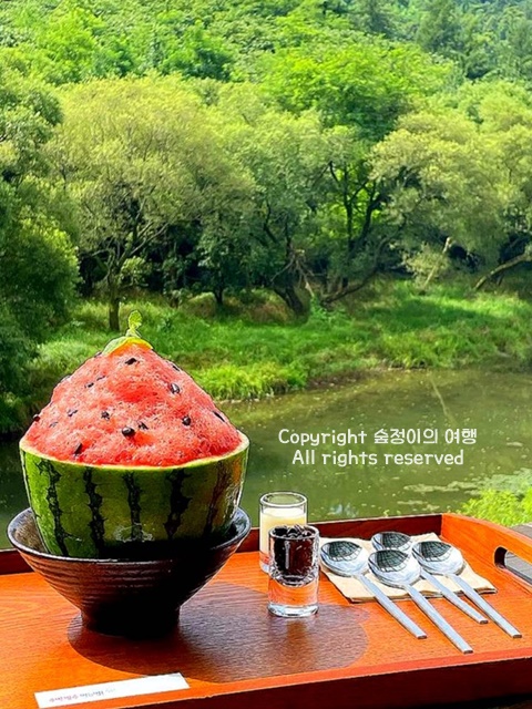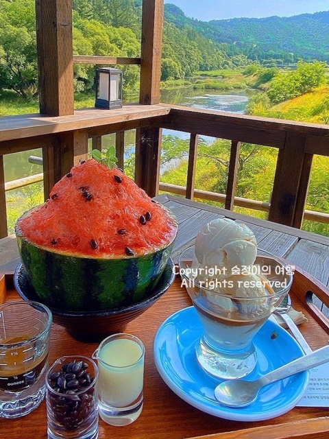 여름에 청주에 가야하는 이유라면 포레스트 뷰를 바라보며 먹는 시원한 수박빙수집이 특별하기 때문입니다. 충청도 날 더울 때 꼭 가야하는 빙수집으로 수박을 직접 재배해서 만드니까 당도 높고 아삭하고 짱 시원했습니다. 눈 앞에서 펼쳐지는 포레스트 뷰 앞에서 당도 높은 수박빙수 먹으면서 7월 국내여행지 베스트 10 더위 다 날려버릴 수 있는 곳입니다.