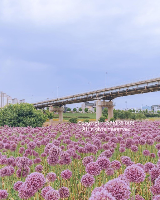 코끼리마늘꽃이 피는 미르섬도 6월 7월 국내여행지 베스트 10으로 핫합니다. 공주 미르섬은 충남 공주시 금벽로 368에 있고 코끼리마늘꽃외에도 수레국화 양귀비등 여러 식물들을 함께 구경할 수 있는 공간이라서 여름 공주 가볼만한 곳 베스트 10 찾는 분들 꽃구경할만한 곳이니 꼭 기억해두시길 바랍니다. 마늘꽃의 10배가 되는 코끼리마늘꽃은 색깔도 예쁩니다.